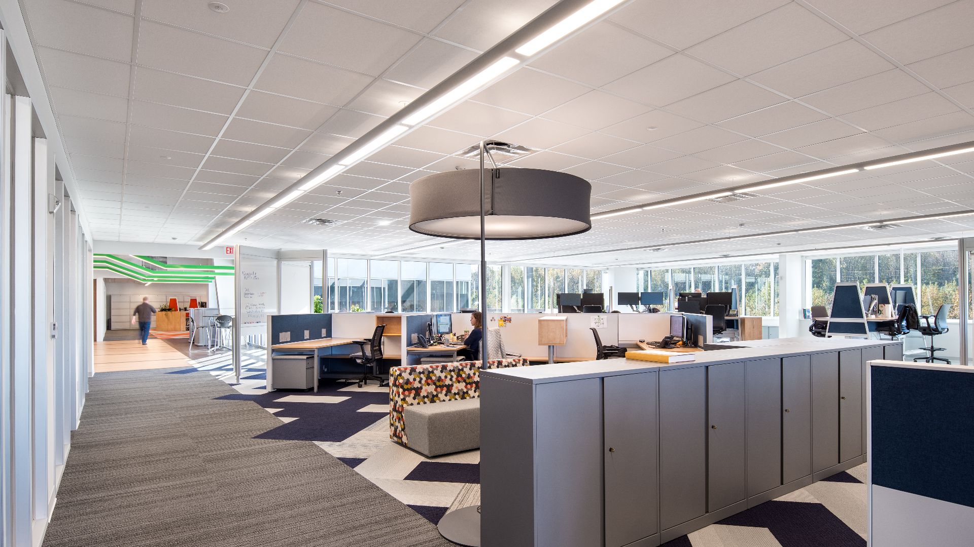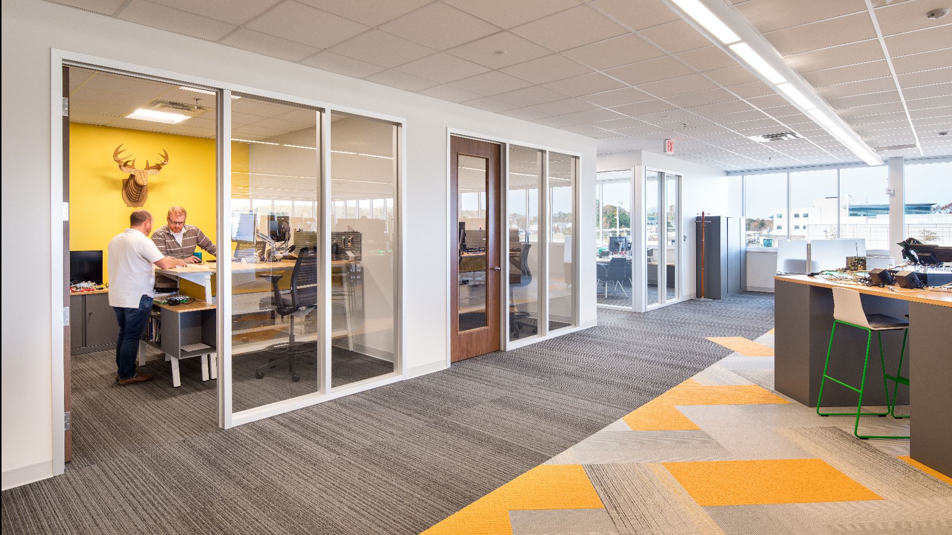 The office and administration section, spanning 20,000 square feet, is designed to foster an engaging and dynamic work atmosphere. It features an open-office layout with high ceilings, bright, airy spaces, and a vibrant color scheme. Large break rooms, mobile workstations, and classroom-style meeting and training areas enhance opportunities for team collaboration and casual interactions. A central feature of this space is "The Hub," a comfortable lounge area with a kitchen and an adjoining outdoor patio, which has become a popular gathering spot for both office personnel and technical staff.